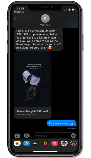 Per the 3 steps above, you can see that creating VISX MEDIA is a straightforward experience. Again, you 1) upload a video into the VISX dashboard 2) add products to that video & 3) generate a unique link that can be sent to customers. In the final step (Step 3), we’ve highlighted an example of what sending VISX MEDIA to a customer looks like. The customer will find a preview image that can be clicked on. After the customer clicks the preview image, the VISX MEDIA the store created will then automatically open. See here how VISX formats all links you send into Preview Images that can be clicked on by customers.