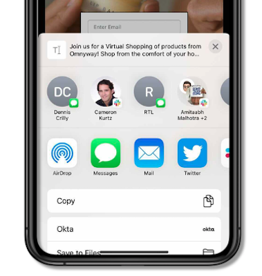 If a shopper arrives at your event within 1 hour of the start time … and would like to share that event… they simply click the share button above and a share function (image on the right) .. will pop up.